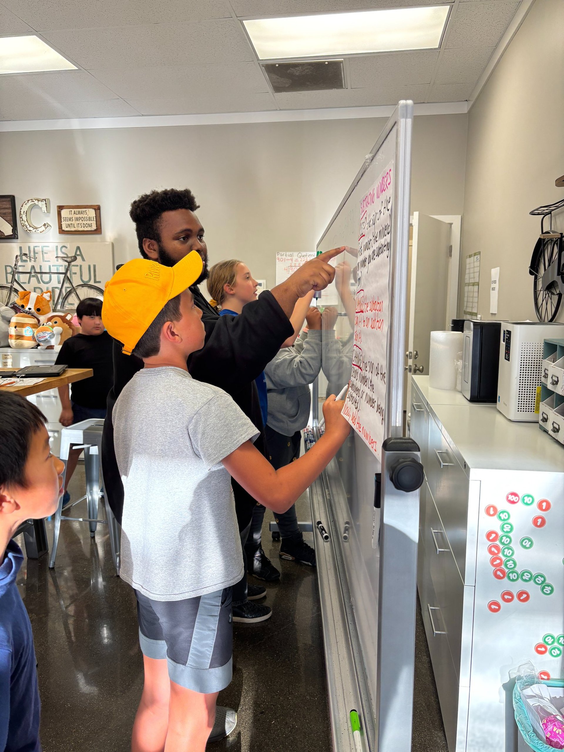 Kids can bring questions from school homework assignments and tests